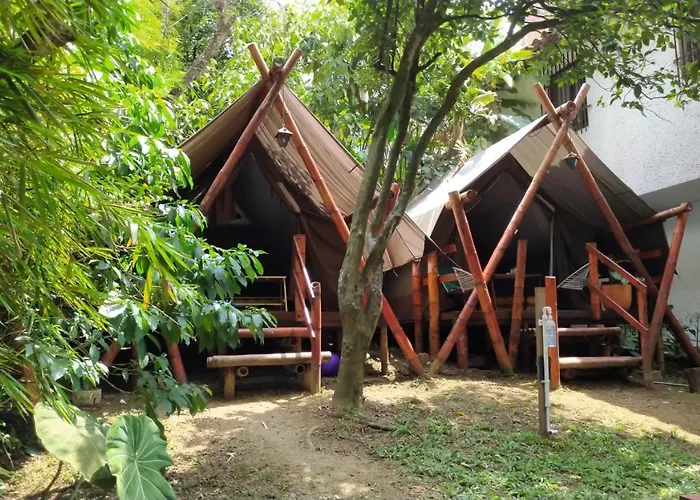 Bambu Glamping Ecolodge tilbyder indkvartering med en solterrasse, en restaurant og et business-center og ligger 4,2 km fra Medellín. Dette sted har også en delt lounge.
